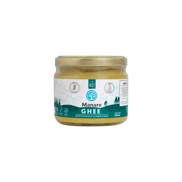 El Ghee Manare es de delicioso sabor y una excelente alternativa para cocinar todo tipo de preparaciones. El Ghee Manare es una mantequilla clarificada, es decir, se calienta la mantequilla a una tempratura controlada y luego se separan lo sólido de las leche de la grasa, por lo que el ghee es un aceite libre de leche. ¿Sabias qué? Por muchos años ha sido utilizado por sus propiedades nutricionales y medicinales. Usos Se puede usar como reemplazo a cualquier aceite que uses para cocinar, saltear, etc. y también lo puedes usar para preparar deliciosos productos horneados. Puedes usarlo en reemplazo de la mantequilla para untarlo en pan, galletas, etc. También lo puedes utilizar para preparar el famoso café "bullet proof" y es una de las mejorar alternativas de aceites que se usan en alimentación low carb o keto. Ingredientes y Alérgenos Ingredientes: Mantequilla de campo sin sal. Contiene derivados de la leche (caseína). Conservar en un lugar fresco, seco y alejado de la luz solar. Una vez abierto mantener en un envase bien cerrado.