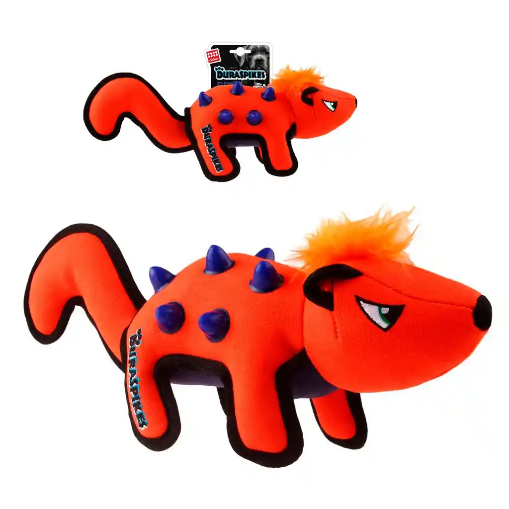 El juguete Gigwi Duraspikes Extra Durable con diseño de Ardilla Naranja es un peluche para perros de tamaño mediano el cual está diseñado para resistir las mordidas más fuertes. Está hecho de una tela de loneta de algodón extra duradera y tiene espigas de TPR moldeadas en la tela, haciéndolo suficientemente resistente para soportar incluso a los masticadores más agresivos. Este juguete tiene un diseño divertido y atractivo que seguramente atraerá la atención de tu mascota, siendo perfecto para proporcionar a tu perro horas de diversión y ejercicio, ayudándoles a fortalecer sus dientes, mantener limpias sus encías y aliviar el estrés.