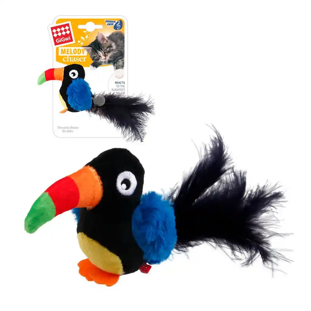 El Tucán Melody Chaser con sonido que se activa con el movimiento de GiGwi es un divertido y estimulante juguete para gatos. Su diseño realista y su movimiento impredecible atraerán la atención de tu gato y lo mantendrá entretenido durante horas. El tucán está hecho de un material duradero y resistente a los mordiscos, por lo que tu gato puede jugar con él sin riesgo a dañarlo, además, tiene un chip de sonido que se activa con el movimiento lo que lo convierte en un juguete aún más atractivo para los gatos. Siendo ideal para mantener activa a tu mascota incitándole al deporte para mantenerse sano y saludable, reduce el aburrimiento y el estrés, estimula la mente y el cuerpo del perro y promueve el juego interactivo.