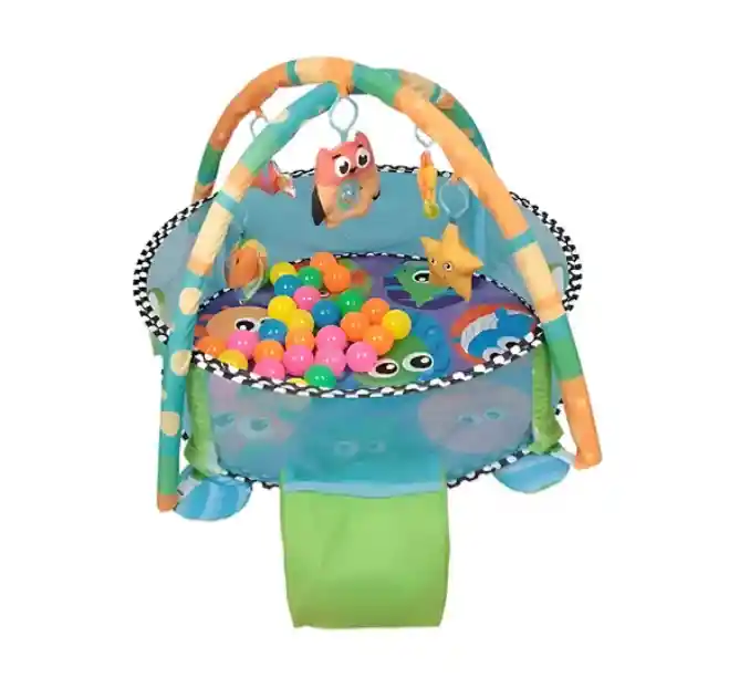 Gimnasio para bebé y piscina de pelotas Incluye * 30 pelotas. * 4 juguetes colgantes. * Malla protectora. Puede ser usado en los primeros meses del bebé como un gimnasio con 4 juguetes móviles y un sonajero que estimularan la visualización. Cuando el bebé ya se sienta solo se transforma en una piscina de pelotas donde podrá trabajar la coordinación del movimiento de sus manos. La malla protectora que rodea al bebé otorga más seguridad.