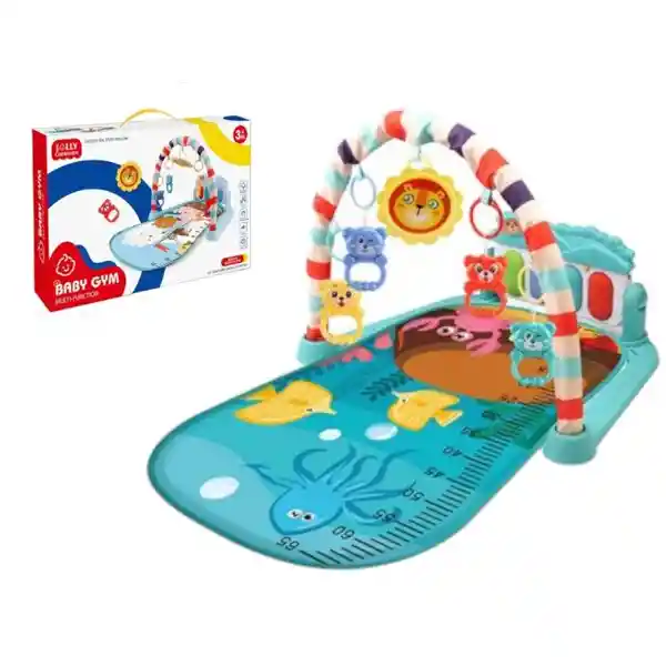 A los 3 meses el bebé puede acostarse jugando con sonajeros colgantes y tocar el pedal musical con luces con las manos y las piernas para promover el desarrollo táctil y muscular. Sensibilidad auditiva: el teclado musical emite diferentes sonidos y canciones Medidas: 74x56x43cm armado Pilas: 3 AA