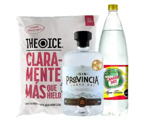 Gin Provincia Andes Dry + Tonica Con Azucar 1.5lts + Hielo 2kg