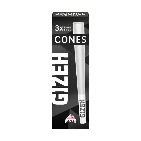 Conos pre-enrolados Gizeh Black King Size con papel extra fino de combustión lenta. Incluye 3 conos con boquilla de cartón y palito para rellenar. Formato práctico para un armado fácil y uniforme.