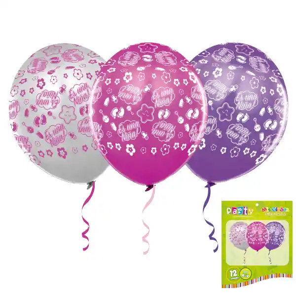 GLOBO #9 FULL IMPRESO ES NIÑA 12 UNIDADES