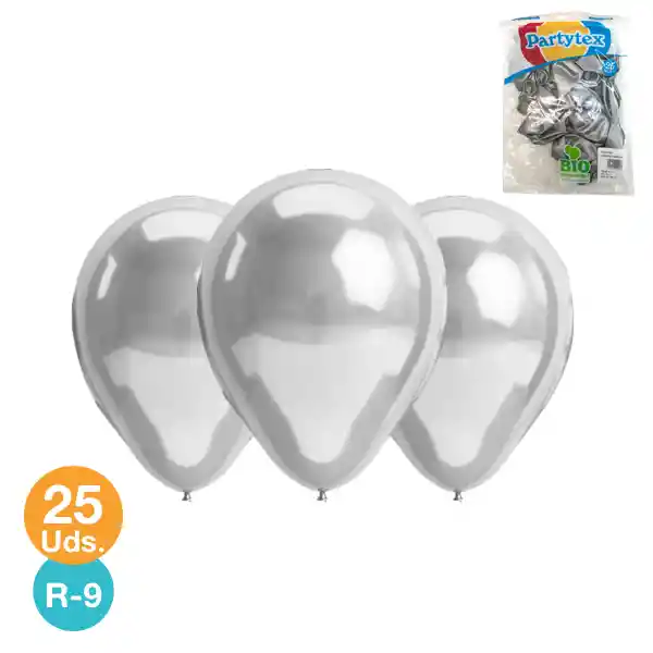 GLOBO #9 PARTYTEX METAL PLATEADO 25 UNIDADES