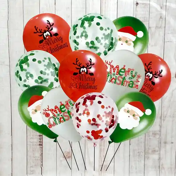 GLOBO LATEX CONFETI IMPRESO NAVIDAD 11 PIEZAS