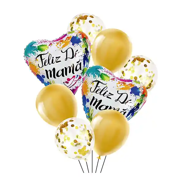 GLOBO LATEX/MYLAR CORAZON MAMA DORADO 8 PIEZAS