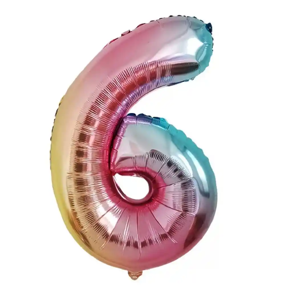 Globo Metálico Arcoíris 70 Cm Número 6