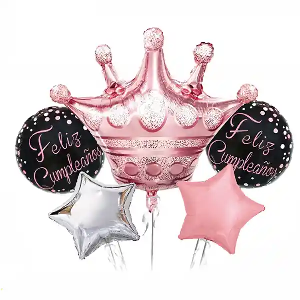 GLOBO MYLAR CORONA ROSADO 5 PIEZAS
