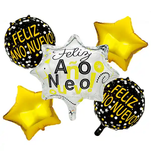 GLOBO MYLAR FELIZ AÑO 5 PIEZAS