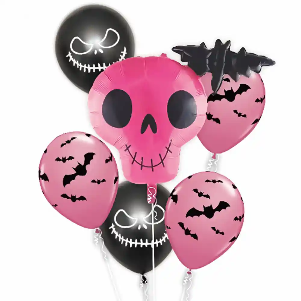 Decora tu Halloween con este set de globos temáticos en tonos rosas. ¡Perfectos para darle un toque divertido y colorido a tu fiesta! Diseño encantador y festivoIncluye un globo Mylar con forma de calavera rosa y 5 globos de látex impresos con motivos de Halloween. 🎈 Set completo de 6 piezasGlobos resistentes y fáciles de inflar, ideales para decorar mesas, rincones o arcos temáticos. Beneficios Set de 6 globos: 1 Mylar calavera rosa + 5 látex impresos Material duradero y brillante Ideal para interiores y fiestas de Halloween Aporta color y diversión a tu decoración Detalles técnicosCantidad: 6 unidadesMaterial: 1 Mylar + 5 látex impresosIncluye: 1 globo Mylar calavera rosa y 5 globos impresosUso: Decoración de Halloween para interiores 👉 Dale un toque divertido y colorido a tu fiesta con este set de globos 🎃💀👉 ¡Agrégalos a tu decoración de Halloween ahora!