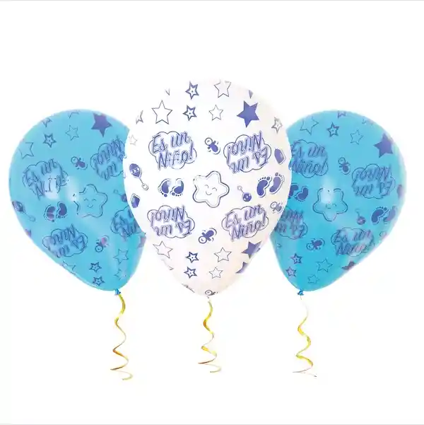 GLOBO R12 BABY SHOWER NIÑO CELESTE BLANCO 25 UNIDADES