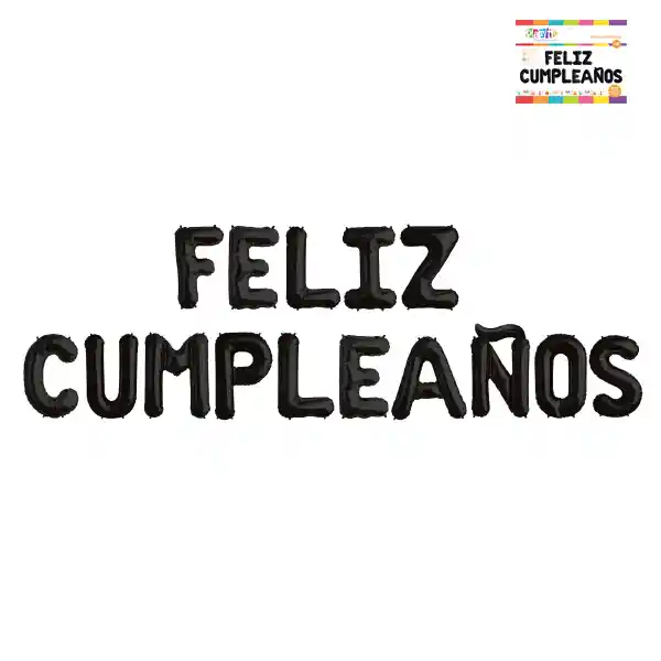 GLOBOS METALIZADOS LETRAS FELIZ CUMPLEAÑOS 16" NEGRO