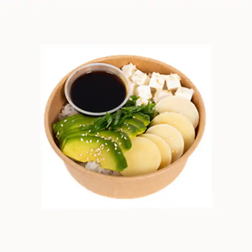El Gohan Vegetariano es un bowl fresco y equilibrado compuesto por arroz, palta, palmitos, cebollín, queso crema y sésamo tostado, acompañado de salsa de soya. Ideal para quienes buscan una opción ligera, sabrosa y sin carne