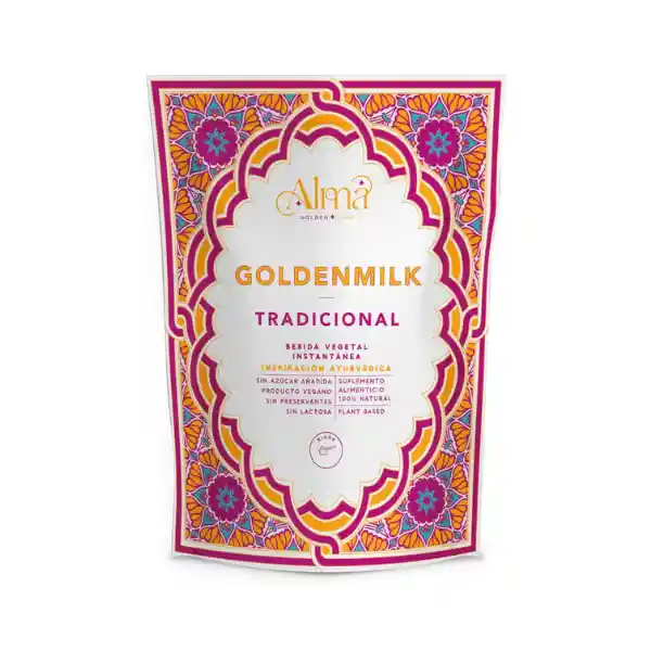 Goldenmilk o leche dorada instantánea deliciosa y altamente funcional. La cúrcuma y las especias que contiene, tienen propiedades antiinflamatorias, analgésicas y antioxidantes, lo que la hace recomendable para aliviar dolores crónicos o persistentes. Ingredientes: Coco deshidratado, cúrcuma, proteína de arroz, canela, jengibre, clavo de olor, nuez moscada, pimienta. Preparación: Disolver 2 cucharaditas en 200 ml de agua fría o caliente y endulzar a gusto.