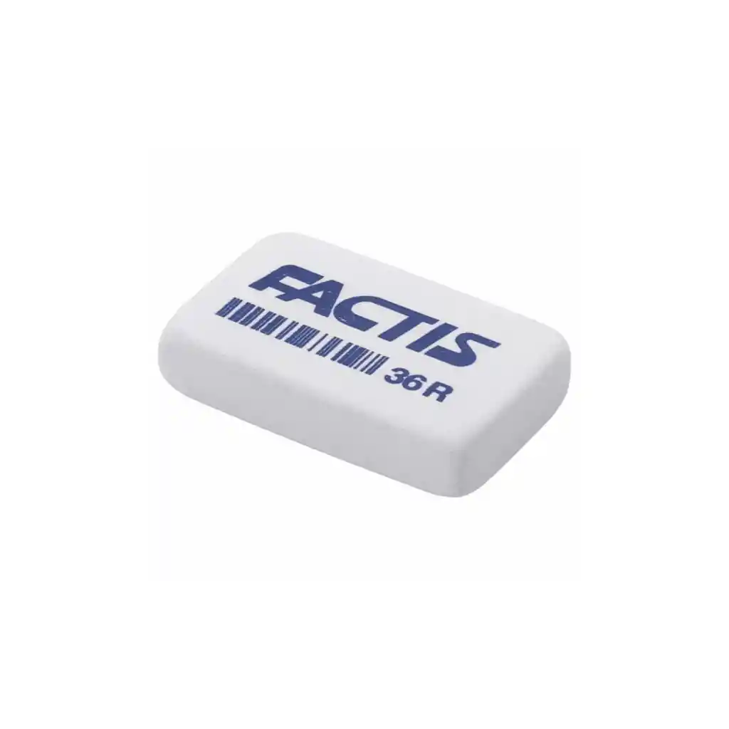 Goma de borrar factis blanca de miga. Suave, no abrasiva y de gran precisión, ideal para lápiz grafito. No daña el papel y es perfecta para uso escolar, universitario o de oficina.
