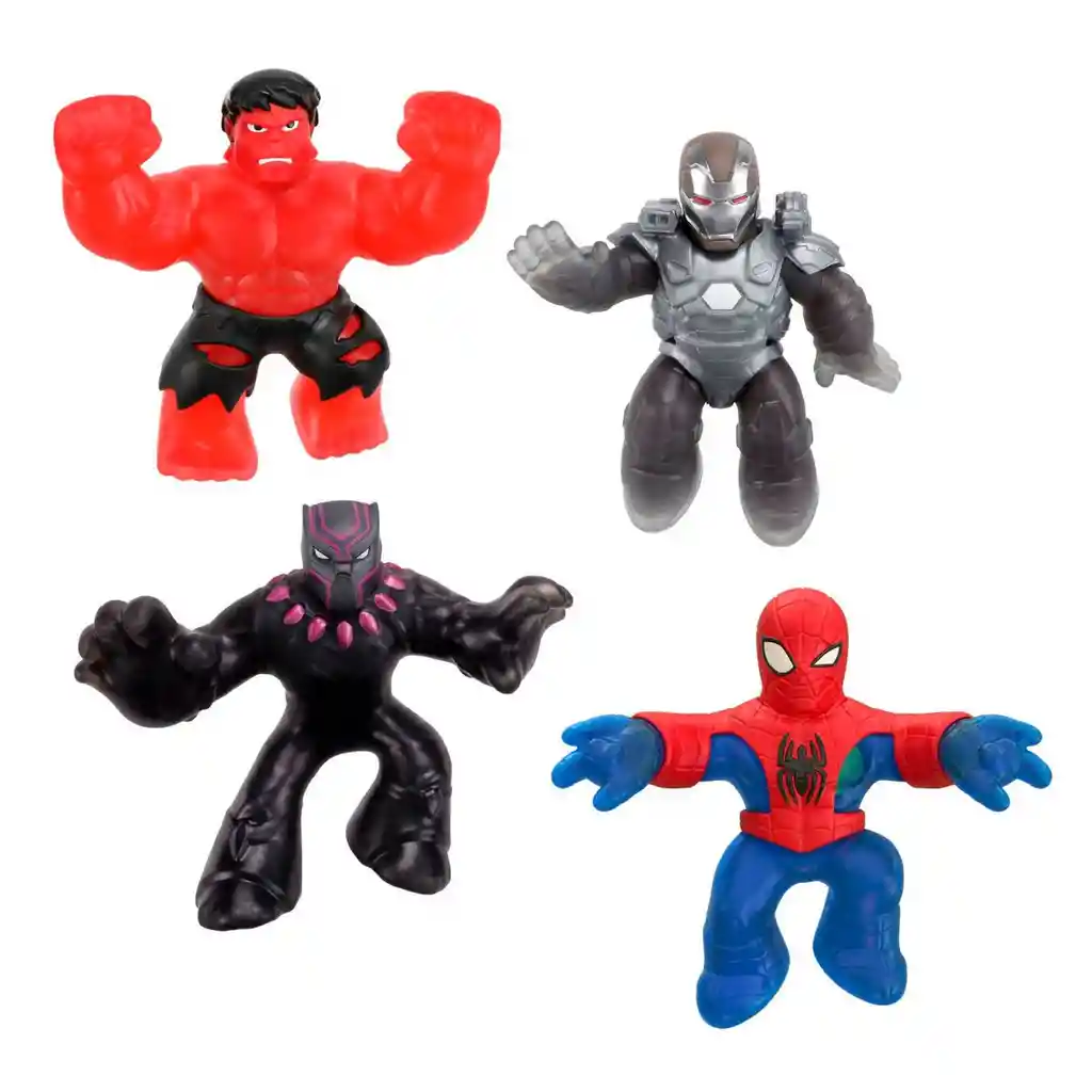 ¡Heroes of Goo Jit Zu Goo Shifters, la edición Marvel ya está aquí! ¡Los héroes de Marvel, elásticos y blandos favoritos de tu hijo, están listos para recibir energía! Aplasta el núcleo de Goo Shifters, el héroe de la edición Marvel, para activar la '¡formación Goo!' ¡Mira cómo la sustancia viscosa dentro de su cuerpo cambia de color! Heroes of Goo Jit Zu Goo Shifters la edición Marvel tiene rellenos Goo únicos. ¡Aprieta, aplasta y estira sus cuerpos súper elásticos, blandos y blandos! Aplasta y estira a tu héroe Marvel hasta 3 veces su tamaño y observa cómo vuelve a su forma original. ¡Hay 4 paquetes de héroes Goo Jit Zu Goo Shifter con temática de Marvel para coleccionar! Blue Strike Spider-Man, Armored Energy War Machine, Vibranium Energy Blast Black Panther y Red Smash Hulk. ¡Colecciónalos todos!