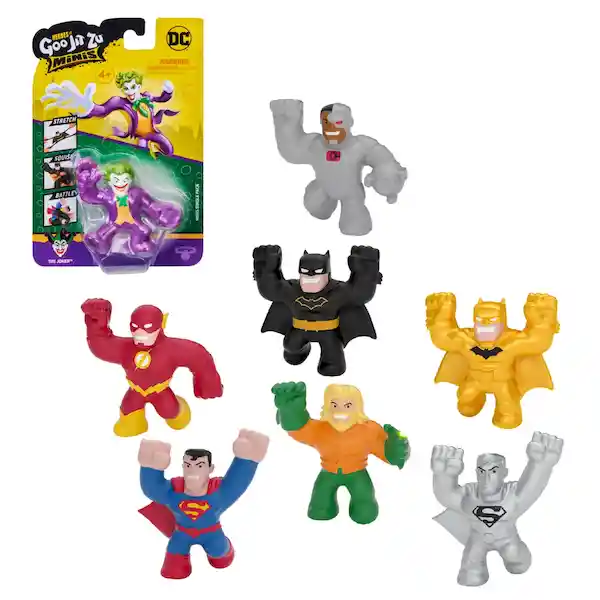 Heroes of Goo Jit Zu DC Minis es una forma completamente nueva de jugar con Goo Jit Zu! Más pequeño en tamaño pero grande en estiramiento y aplastamiento, todos tus héroes favoritos de DC están llenos de Goo y listos para la batalla. Cada Mini DC Hero puede estirar sus increíbles cuerpos hasta 4 veces su tamaño real. Estírelos y envuélvalos entre sí para verlos luchar mientras vuelven a su forma y tamaño originales. Hay ocho mini súper elásticos para coleccionar ( Todos se vendern por separado). Todos tus héroes favoritos de DC están disponibles en esta gama Mini Goo Jit Zu, que mide 7 cms. alto aproximadamente, incluidos Batman, Superman, The Joker, The Flash, Aquaman y Cyborg. ¡Además, ten cuidado con el raro Superman metálico y el Ultra raro Batman doradoDescubre una nueva forma de jugar y salvar el día con estos geniales Mini DC Heroes de Goo Jit Zu coleccionables. Se recomienda de 4 años en adelante.