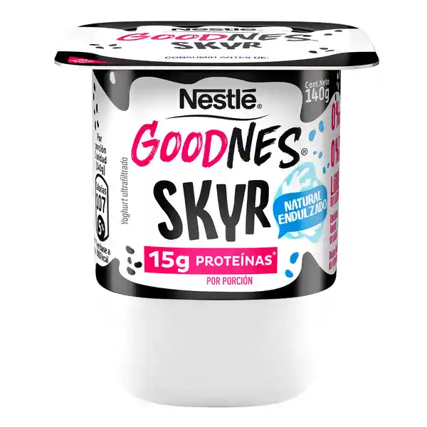 Leche descremada, reconstituida, espesante goma, garrofín, espesante goma, xantán, gelatina, enzima, lactasa, preservante, sorbato de potasio, edulcorante sucralosa, edulcorante estevia, cultivo lácteo.