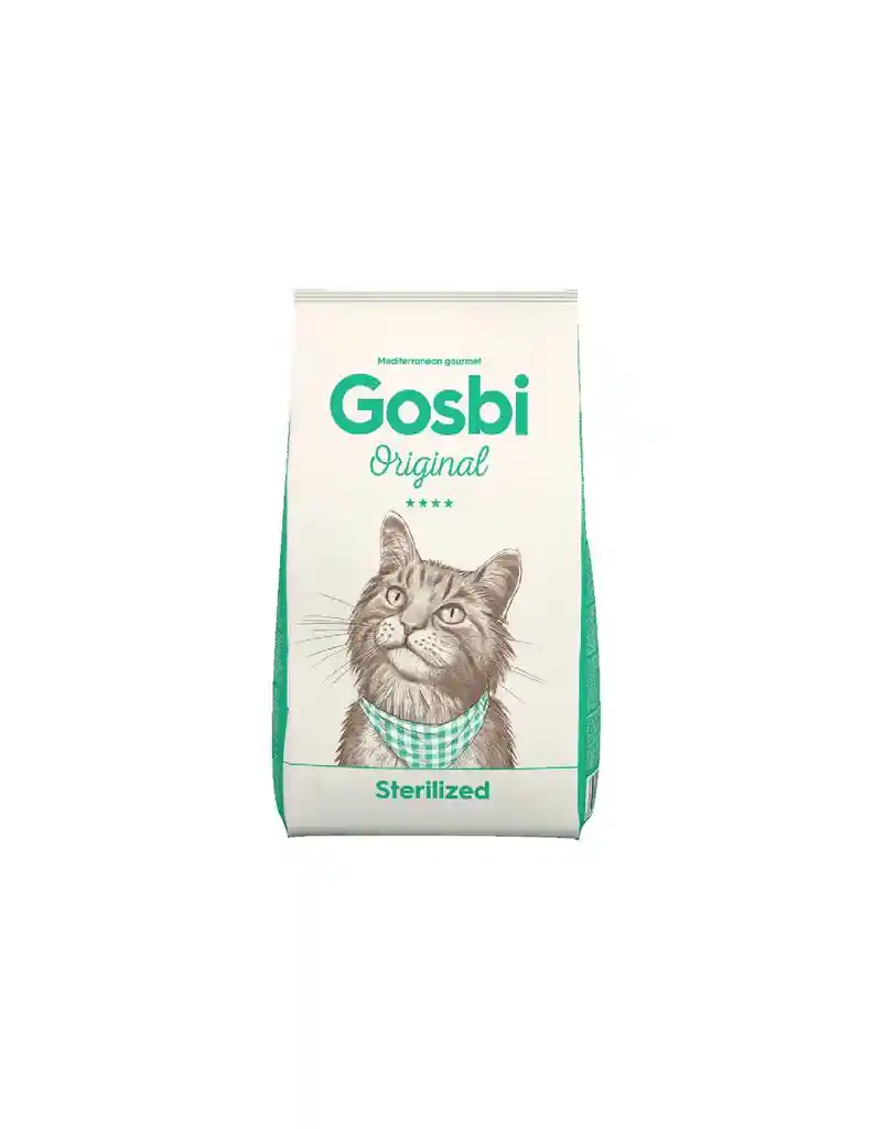 Gosbi Original Sterilized es un alimento completo para gatos adultos esterilizados con tendencia al sobrepeso. En la gama GOSBI ORIGINAL se incorporan ingredientes específicos para favorecer la salud ocular, cardiovascular, inmunitaria e intestinal, mediante algas, frutas y verduras ricas en antioxidantes naturales. Se utiliza carne deshidratada como fuente de proteína de alta calidad consiguiendo una digestibilidad superior al 90%. Es un alimento sin gluten.