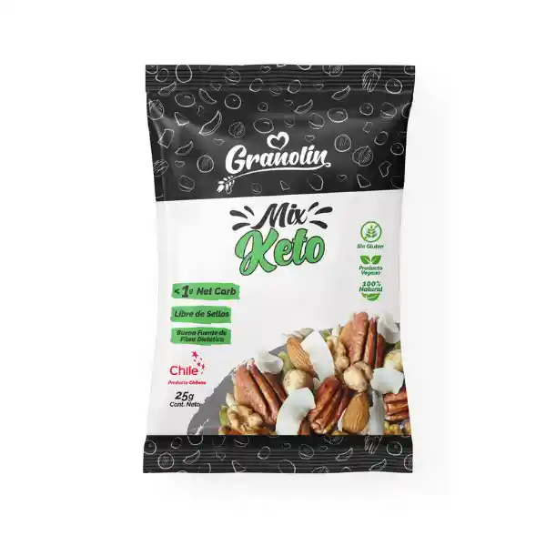 MIX KETO DE FRUTOS SECOS 0,8 grs NET CARB Libre de Gluten Libre de sellos Sin Fritura Libre de lactosa Buena fuente de fibra VEGANO 100% Natural 25 gr cada Snack 16 unidades por display Marca Chile La colación idea para tus hijos El mejor snack para tu oficina Disfrútalo en todo momento ¨SNACK CREADO PARA CONSUMIR EN UNA DIETA CETOGÉNICA, LOW CARB Y KETO, BAJO EN CARBOHIDRATOS. NO INTERFIERE EN ESTADO DE CETOSIS Y MANTIENE GLICEMIAS DENTRO DEL RANGO ESPERADO¨ INGREDIENTES: Almendras, nueces pecanas, semillas de zapallo, avellanas europeas, semillas de maravilla y coco laminado. Contiene: nueces y sulfitos.