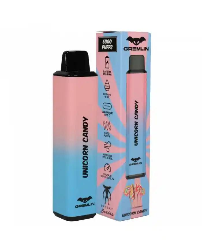 Gremlin Series - Spooky - 6000 Puffs Nuevos vaporizadores desechables Gremlin Series, gracias a su sistema de carga Tipo C, ahora podrás aprovechar todo el liquido de tu desechable sin desperdiciar ni una sola gota! Sabores: Funky Dragon : Dragonfruit, mora, frambuesa. Deleita tus sentidos con esta mezcla exótica y audaz, diseñada para una experiencia de vaporización única. Berry Crush: Limon y arándano. Una explosión refrescante de limón combinada con la dulzura jugosa del arándano, creando una experiencia frutal refrescante. Icy Mint: Menta Ice. La esencia perfecta para los amantes de la frescura extrema. Tropical Paradise: Kiwi, maracuyá y guayaba. Sumérgete en un viaje hacia un paraíso tropical en cada calada con la mezcla de estos sabores. Vera Grape: Uva, aloe vera. Una armoniosa fusión de sabores que ofrece una experiencia de vaporización de un regusto frutal. Unicorn Candy: Algodón de azúcar, dulces. Una mezcla mágica de sabores dulces y vibrantes en cada calada Sweet bears: Osos de gomitas. Una deliciosa explosión de sabor que captura la esencia de los clásicos y dulces ositos de gomita.