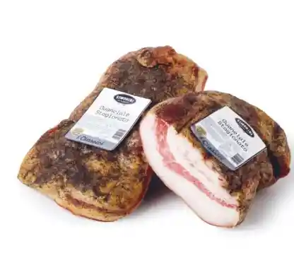 Guanciale – Corte Premium de Carne de Cerdo. Proveniente de la mejilla del cerdo, el Guanciale se diferencia del tocino y la panceta por su grasa fina y textura suave. Curado con azúcar, sal y especias como pimienta o hinojo silvestre, este producto artesanal de la gastronomía italiana destaca por su sabor característico y menor salinidad. Ideal para recetas tradicionales como amatriciana y carbonara, el Guanciale ofrece una experiencia gourmet superior.