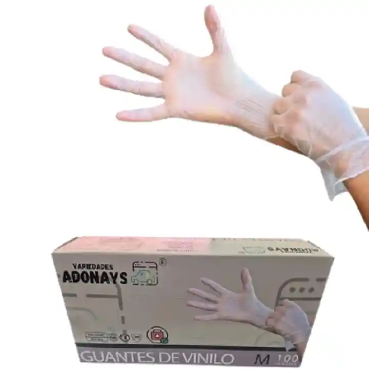 Guante desechable de vinilo. - Caja de 100 unidades. - Resistente a la rotura por estiramiento y desgarro. - No Latex - No produce irritación al contacto con la piel. - Superficie interna lisa. - Alta sensibilidad al tacto. Función. Los guantes de vinilo son una excelente barrera de protección personal, ideal para alérgicos al látex. Se usan en procedimientos o tareas cortas no asépticas en que se requiere mayor resistencia a ácidos, grasas y alcoholes.