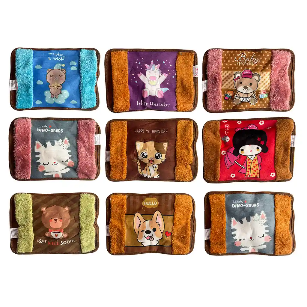 Bolsa de agua caliente recargable con doble enchufe con estampado de dibujos animados, calentador de manos a la moda, botella de agua caliente, inyección a prueba de explosiones. Accesorios que incluye: Embudo, tapón y cable. Características: Tensión nominal: 220V. Potencia nominal: 500W. Tiempo de uso: 4-10 horas. Control automático de temperatura para evitar el sobrecalentamiento. Modo de uso: 1) Llenar el guatero con el embudo proporcionado, asegurando el tapón. 2) Usar de 800ml a 1 litro de agua, evitando mojar la entrada. 3) Asegurarse de que la entrada esté seca antes de conectarlo si está húmeda, esperar a que seque. 4) Conectar a la corriente usando el cable provisto. 5) La luz indicadora se activará y se apagará una vez que el agua alcance la temperatura deseada. 6) Desconectar y estará listo para su uso. SE ENVIA DISEÑO AL AZAR.