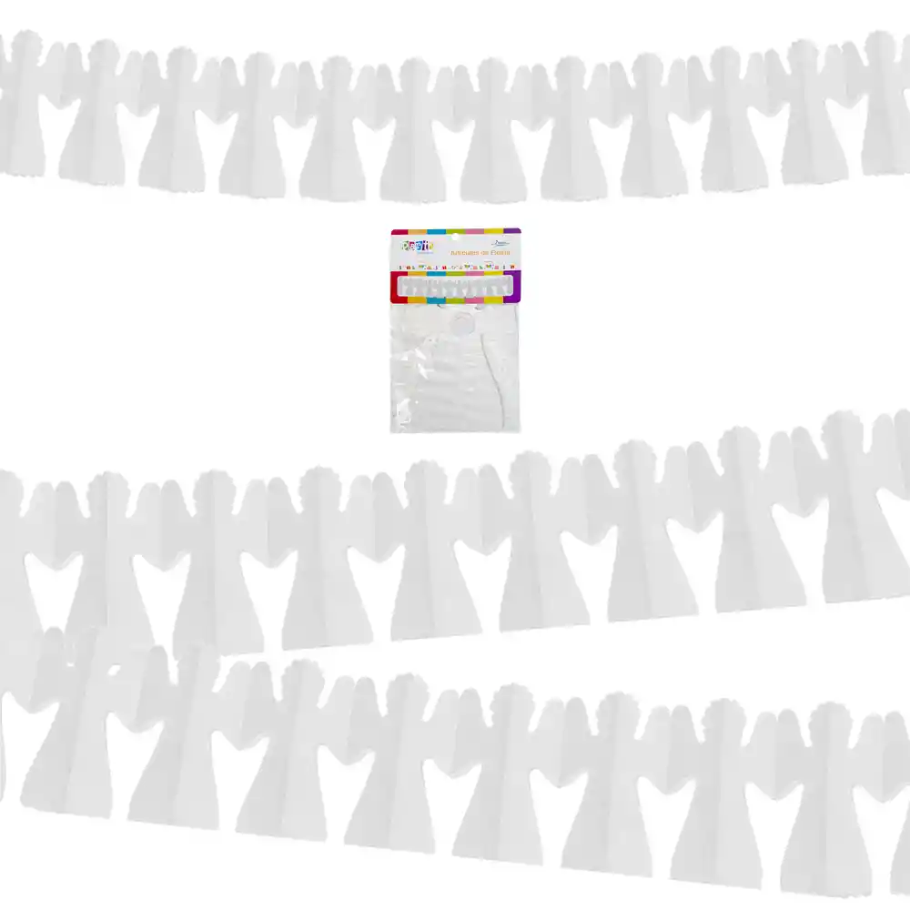 Decora tus celebraciones con ternura y elegancia gracias a esta guirnalda blanca con diseño de ángeles, ideal para crear un ambiente especial en ocasiones religiosas y familiares. Dulce y significativaSu diseño en color blanco transmite pureza y paz, convirtiéndola en la decoración perfecta para baby showers, bautizos, primeras comuniones y celebraciones similares. ’« Práctica y vistosaCon 2 metros de largo y ángeles de 15 x 22 cm, es fácil de colgar en muros, mesas o entradas, dando un toque festivo y armonioso a tu evento. Beneficios Diseño delicado y simbólico de ángeles Color blanco que combina con cualquier decoración Tamaño ideal para resaltar espacios Liviana y fácil de instalar Detalles técnicos Cantidad: 1 unidad Largo: 2 metros Medida de cada figura: 15 x 22 cm Color: Blanco Material: Papel resistente Haz de tu celebración un momento inolvidable con esta guirnalda de ángeles! PÃdela ahora y recÃbela en la puerta de tu casa. ‘¼