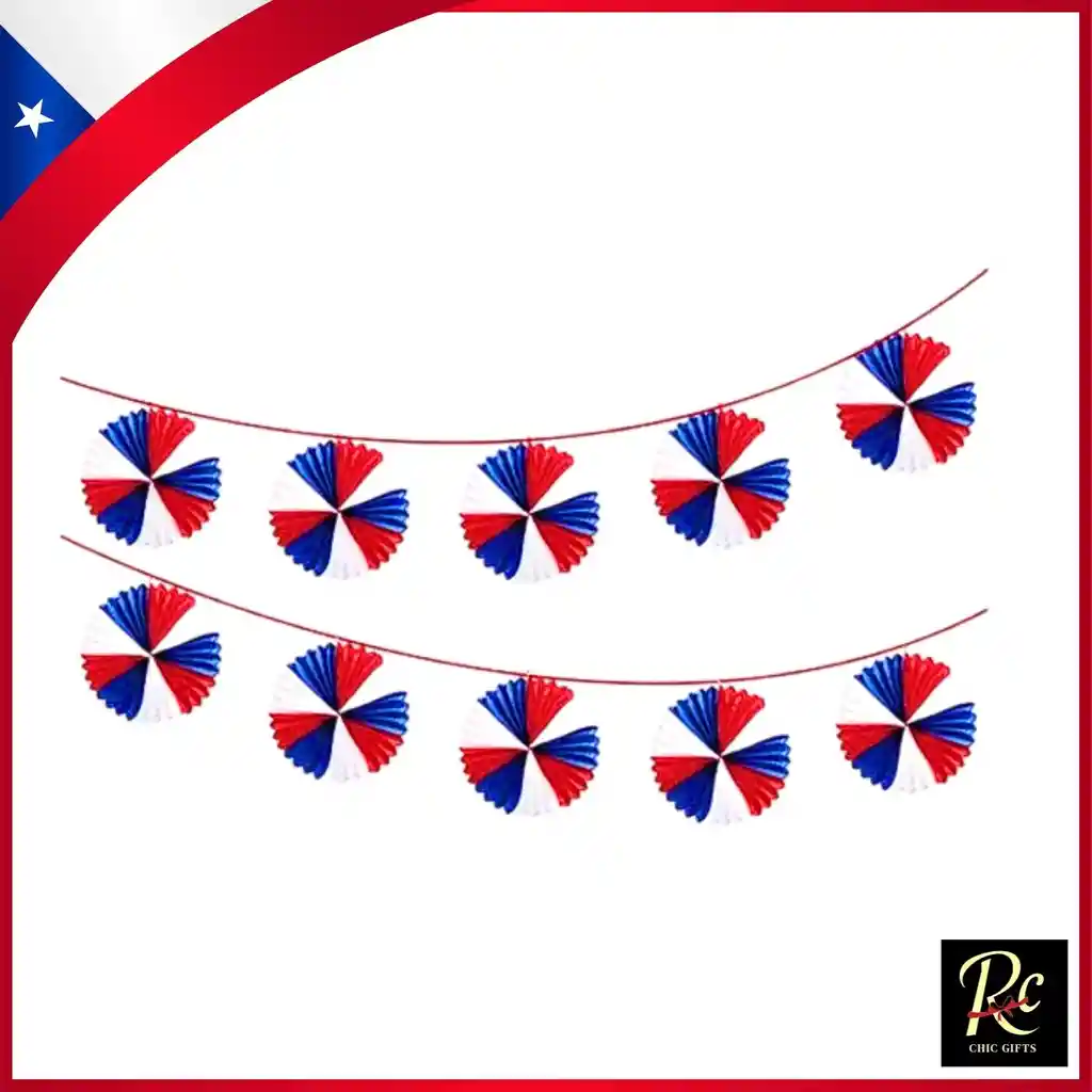 ¡Decora tus espacios con energía y tradición este 18 de septiembre! La Guirnalda Decorativa de Abanicos Tricolor de 3 metros es el complemento ideal para tus celebraciones de Fiestas Patrias en Chile. Con colores vibrantes rojo, blanco y azul —inspirados en la bandera chilena— esta guirnalda es perfecta para ambientar fondas, colegios, casas, vitrinas comerciales, restaurantes y oficinas con un estilo auténticamente dieciochero. Cada abanico está elaborado en papel de alta calidad y dispuestos a lo largo de una cinta resistente, lista para colgar en muros, techos, balcones o entradas. Su diseño en abanico agrega volumen y dinamismo a cualquier espacio, convirtiéndola en una opción decorativa versátil, llamativa y fácil de instalar.