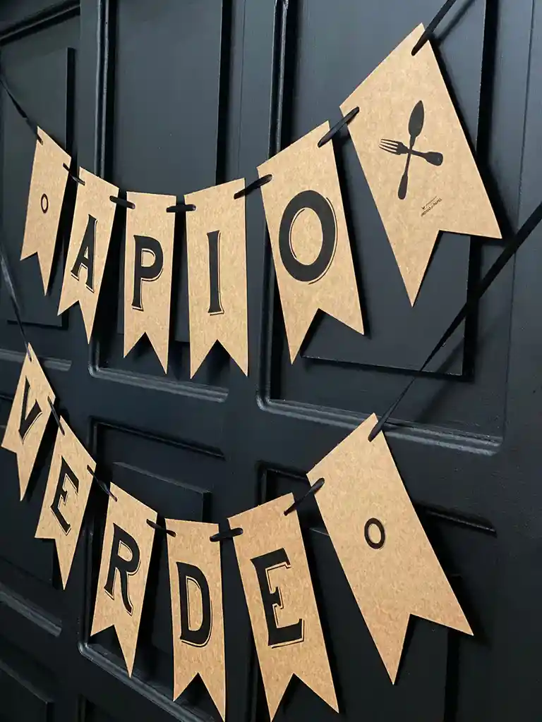 Guirnalda de Papel Texto:Apio Verde Papel Kraft 300g. 10 m. cinta de raso