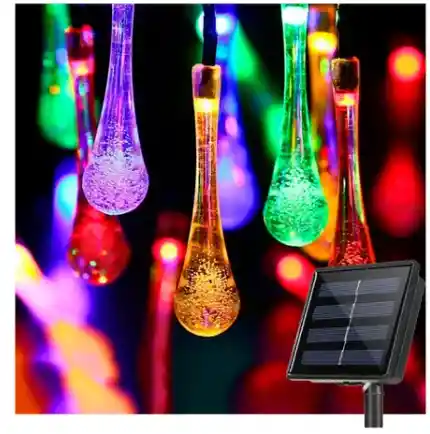 - Luces de colores. - Mide aprox 6 metros de largo - Trae 30 led - Se cargan mediante el sol. - Son tan brillantes como las LED que se conectan a la red eléctrica. - Son sencillas y rápidas de instalar. - Es perfecta para cualquier decoración de ocasión especial, como para su fiesta, jardín, patio, boda, vacaciones, balcón, árbol de Navidad, reunión. -30 leds repartidos en 5 mts, el metro restante es del cable Incluye: 1 x set luces de gota de agua 1 x panel solar Con estaca.