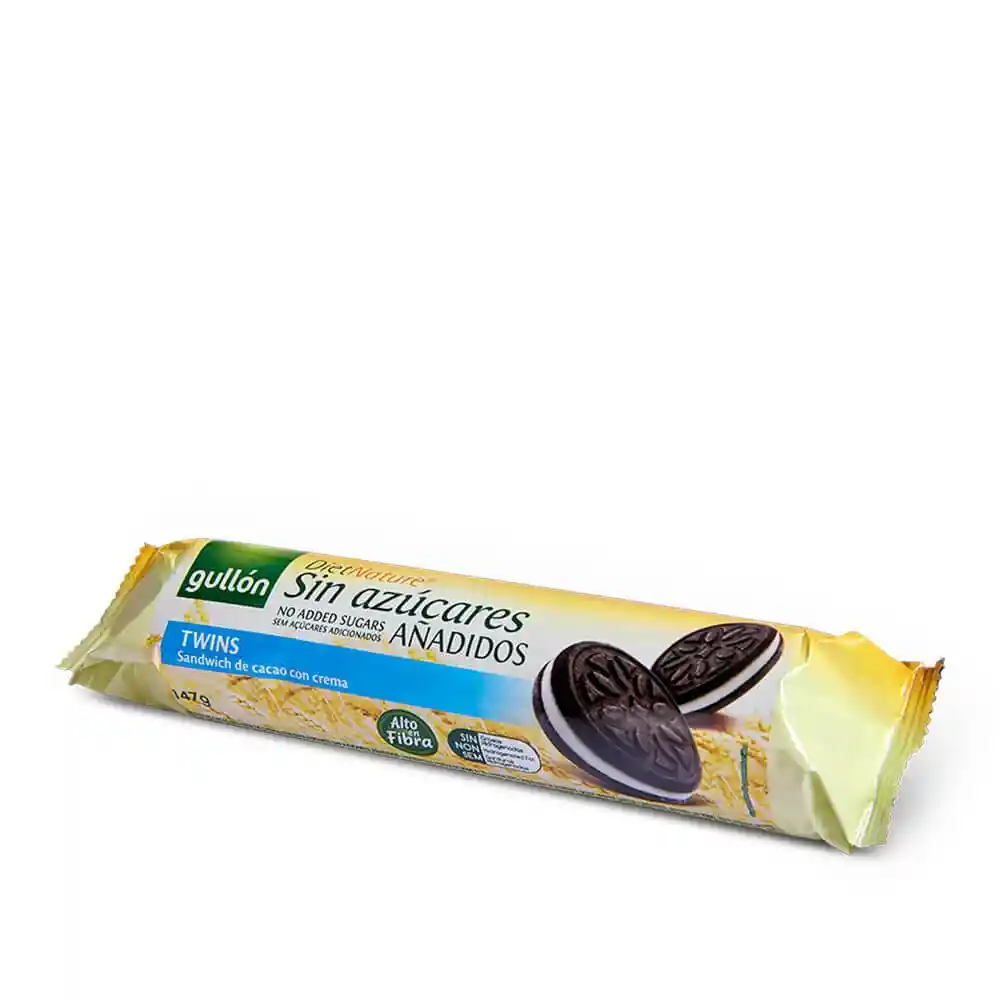 Galleta tipo sandwich de cacao con relleno de crema. No contiene azure añadida. Es alto en fibra. packing: Bolsa