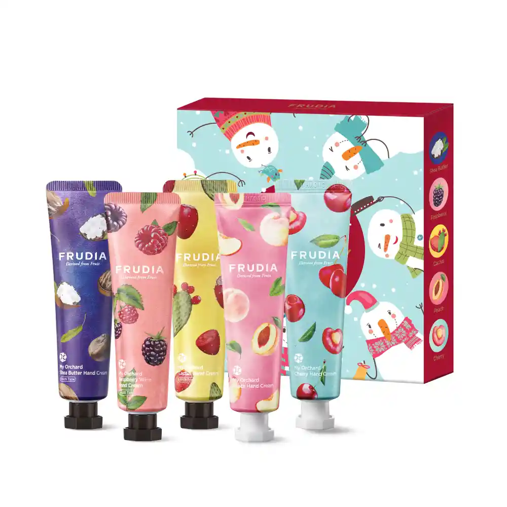 Una selección de 5 cremas de manos formuladas con los mejores extractos frutales, proporcionando un efecto hidratante y reparador. Este set, incluye caja de regalo con el diseño Winter Play con las siguientes variedades: Manteca de karité, Frambuesa, Cactus, Durazno, Cereza.