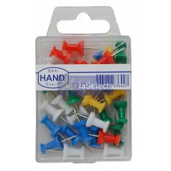 Contiene 100 Unidades. Push Pins Multicolor de la Marca Hand Office. Ideales Para Fijar Documentos Planos y Notas en Tableros o Paredes. Herramienta Indispensable Para Mantener la Organización en Oficinas Talleres y Espacios de Construcción.
