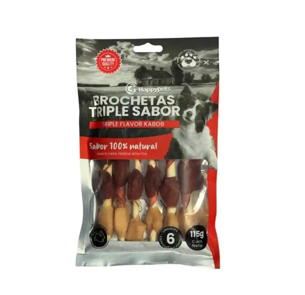 Delicioso snack con tres carnes diferentes pollo, vacuno y pato. Deja que tu peludo disfrute siempre de los mejores snacks.