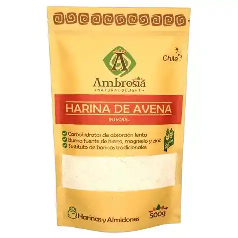 Harina de Avena Integral 500g Ambrosia: Libre de glutenLibre de SoyaLibre de lactosa Vegano, sin conservantes, ni mezclas de otros subproductos, ideal para uso en reposterìa, panes, pizzas, etc. ¡Vive Vegano!