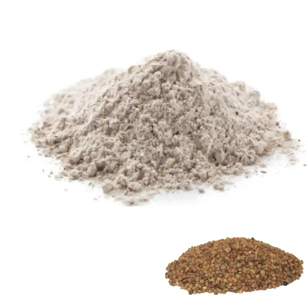 Harina de trigo sarraceno integral, contiene pequeños trozos de cáscara, ideal para preparaciones de panadería y pastelería libre de gluten, esta harina es proveniente de un pseudocereal llamado también alforfón, (no tiene relación familiar con el trigo), tiene forma de pirámide y es una de las mejores harinas libres de gluten disponibles en el mercado, por su alto contenido de proteína, fibra y la capacidad de unir y dar consistencia a masas. Se recomienda utilizar combinada con otros productos Libre de gluten certificada Producción nacional apto para celiacos