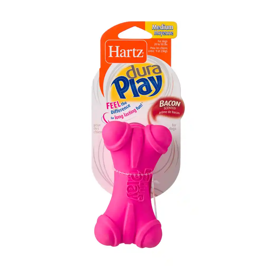 Siente la diferencia con Dura Play juguetes para perros de látex natural. Cada juguete proporciona diversión duradera utilizando tecnología de espuma que mejora la durabilidad, creando una experiencia de masticación sin igual con un olor a tocino tentador para los perros se vuelven locos. Divertido de lanzar y rebotar, Dura Play juguetes incluso flotan y son fáciles de limpiar. Suave y flexible al tacto, cada divertida forma es perfecta para perros de todas las edades. Recuerda supervisar a tu cachorro con cualquier juguete. CARACTERÍSTICAS *El exterior está hecho de látex firme y natural para mayor durabilidad; el interior utiliza la tecnología de espuma para un juguete más masticable y más generoso con un chillador irresistible. *Incluye una versión pequeña de nuestro Dura Play Bone para perros de menos de 20 libras. *Tocino perfumado para conseguir tu peludo amigo jugando en las cuatro patas. Suave y flexible al tacto y perfecto para perros de todas las edades, incluso perros senior y cachorros de dentición. *Ligeros para lanzar, llevar y rebotar, los juguetes Dura Play incluso flotan y son fáciles de limpiar