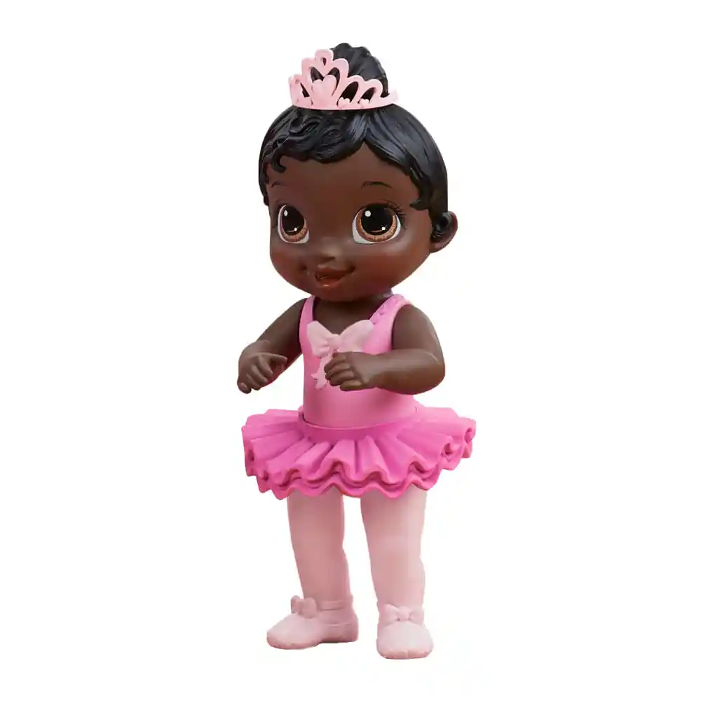 Es hora de la clase de ballet. Los niños pueden imaginarse en presentaciones de baile con su muñeca Baby Alive Sweet Ballerina Baby. Incluso presenta un body moldeado morado, como una bailarina. Las niñas de 3 años en adelante pueden vestir esta muñeca articulada con sus accesorios de muñeca con temas de ballet, que incluyen una falda tutú removible y una tiara. Esta muñeca de ballet de 25 cms. es un gran juguete para niñas y niños. La muñeca Baby Alive Sweet Ballerina Baby también es un regalo adorable para las bailarinas.
