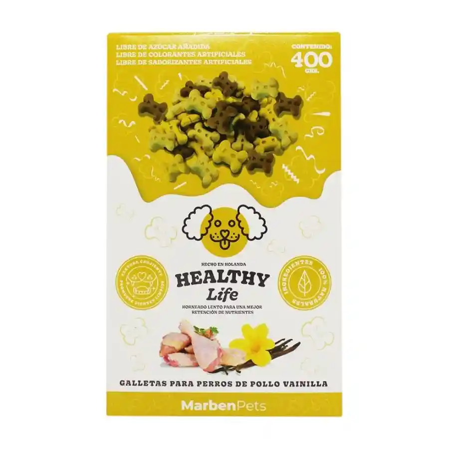 Galletas de pollo y sabor vainilla es una receta de bizcochos horneados en cocción lenta, crujientes y saludables para perros. Producto elaborado con ingredientes especiales que combinan los beneficios de una nutrición equilibrada con un sabor inigualable.