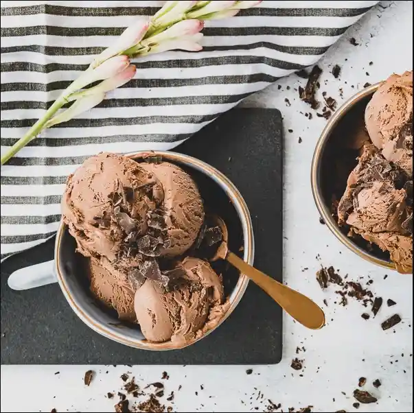 Helado de chocolate sembrado con trozos de chocolate 70% cacao. Tamaño: 1/2 litro / Libre de gluten