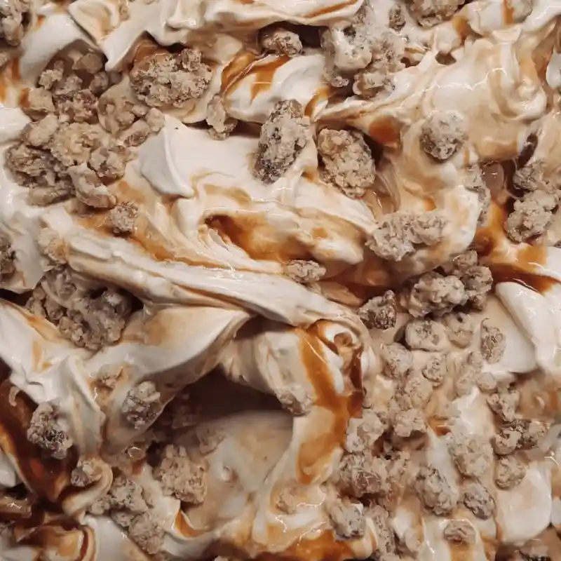 Helado de chocolate blanco con toque de toffee, praliné de nueces y caramelo salado. Pote de 473 ml.