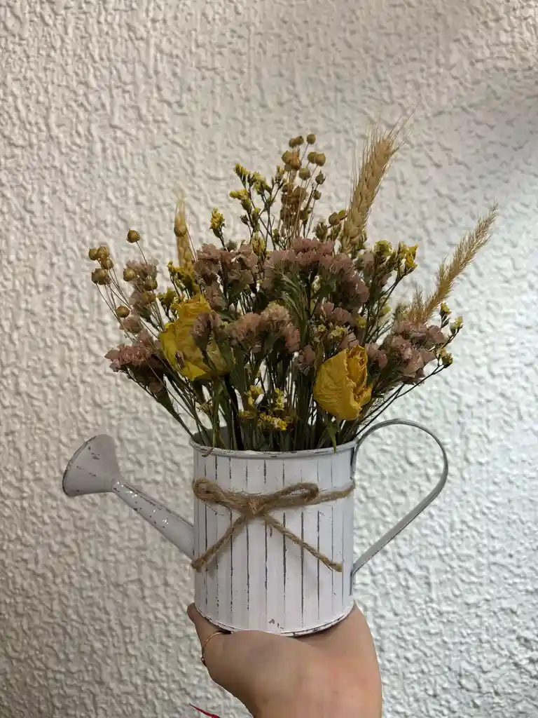 Un delicado jarro de inspiración vintage que guarda una composición de flores secas cuidadosamente seleccionadas para transmitir calma, nostalgia y belleza atemporal. Cada flor conserva su forma y color como un pequeño susurro del pasado, perfecto para decorar espacios con estilo romántico, bohemio o rústico. Ideal para regalar emociones que no se marchitan o para llenar tu hogar de poesía visual.