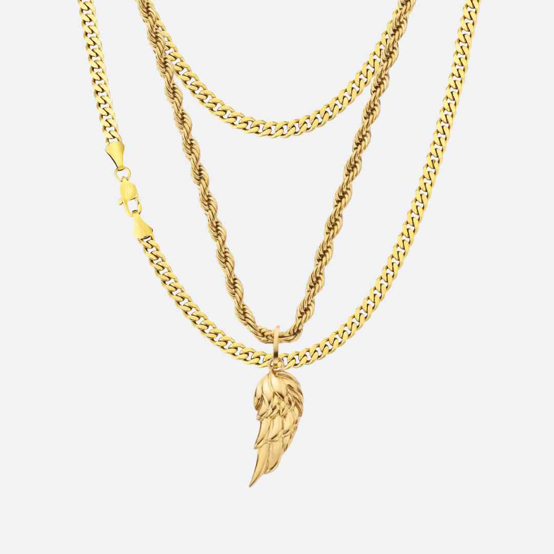 CARACTERÍSTICAS✓ Acero inoxidable 316L✓ Rodio✓ Resistente al agua, sudor y calor✓ Hipoalergénico (sin piel verde)✓ Enchapado de Oro 18k y Oro 14k de 2.5 micras Incluye:- Cadena Miami Cuban 5mm 50cm Oro- Hermés Pendant Oro + Cadena Rope 2.5mm Oro