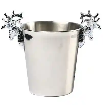 Elegante y funcional para tus celebraciones. Capacidad: 5 litros. Diseño sofisticado con asas en forma de ciervo. Material: acero inoxidable, resistente y fácil de limpiar. Perfecta para mantener tus bebidas frías con estilo.