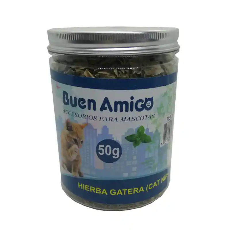 . Hierba gatera orgánica segura, pura y potente sin químicos, pesticidas o rellenos. . Contiene una gran cantidad de vitaminas y fibras, que pueden ayudar a los gatos a excretar bolas de pelo, hacer que sus intestinos y estómago sean más saludables. . Los Gatos mastican hojas de menta para limpiar los dientes, mejorar la salud oral, prevenir enfermedades orales y mantener un buen olor. . Ayudar a los gatos relajarse, la mayoría de los gatos se vuelven enérgicos y mejoran su apetito. . Marca: Buen Amigo. . Material: Material de Catnip. . Presentación: 50 g. . Contenido: 1 Frasco de Hierba Gatera.