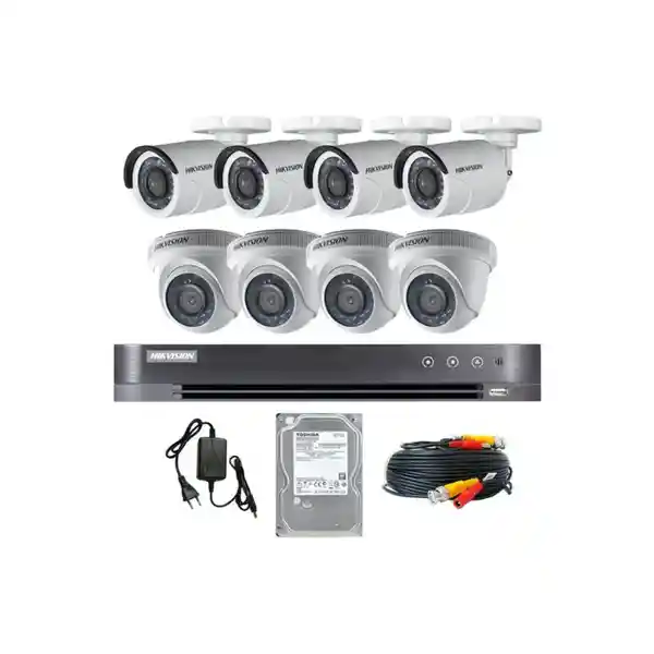 Kit Hikvision Contine 12 Unidades. Dvr. 8 Canales. Incluye 8 Cámaras Disco Duro 1Tb. Full hd 1080P. Na Compresión de Video H.264 Mejora la Eficiencia de Codificación y Reduce Los Costos de Almacenamiento de Datos.