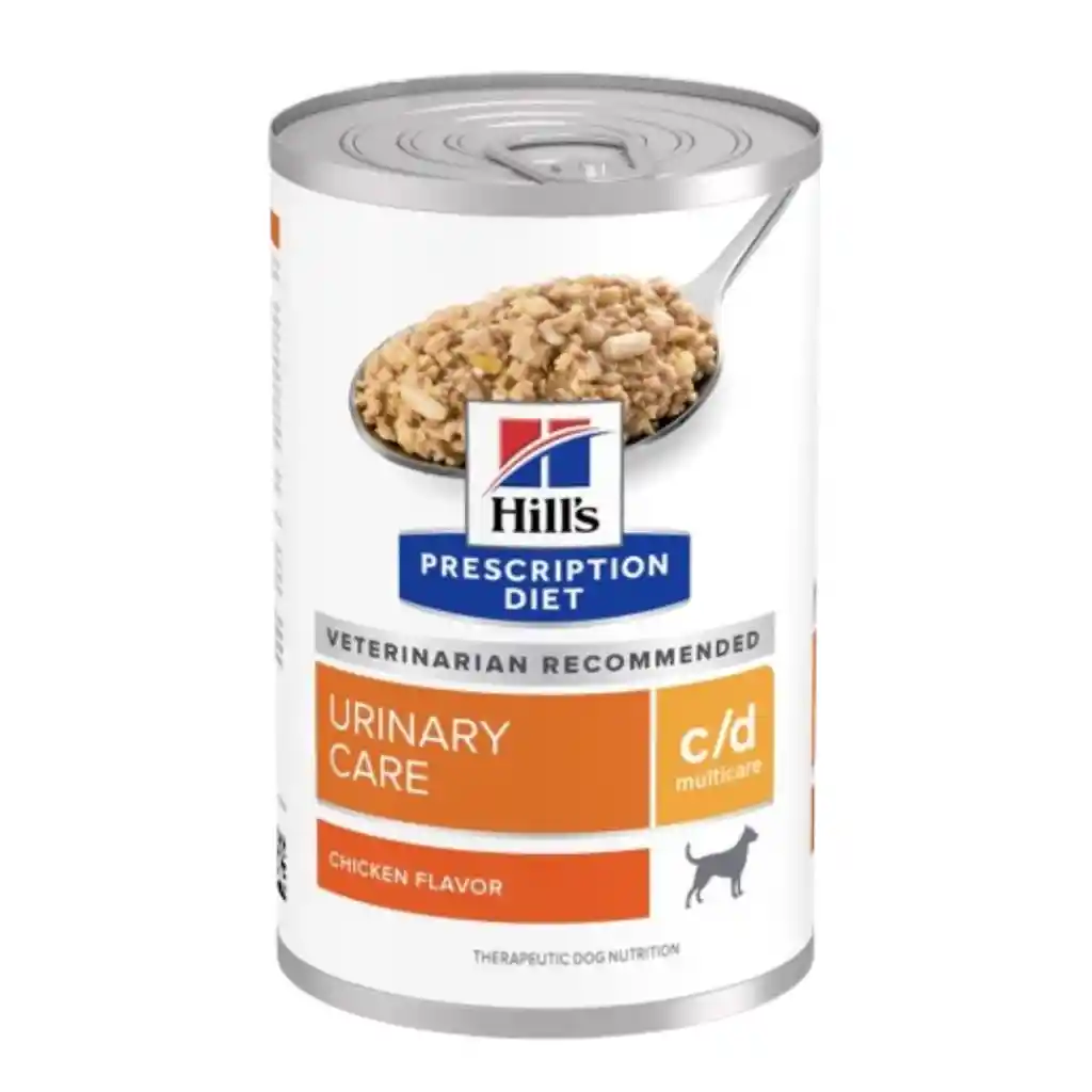 El alimento enlatado para perros Hill's Prescription Diet c/d Multicare Urinary Care es nutrición clínica especialmente formulada para reducir el riesgo de cálculos de oxalato de calcio y estruvita en perros. Desarrollado por nutricionistas y veterinarios de Hill's. Este alimento está enriquecido con antioxidantes, citrato de potasio y ácidos grasos omega-3, además de contener niveles controlados de grasa y ser bajo en sodio. Consulte a su veterinario para obtener más información sobre cómo los alimentos Prescription Diet pueden ayudar a su perro a seguir disfrutando de una vida feliz y activa. Ingredientes Pollo (19%), hígado de cerdo, arroz, maíz, celulosa, minerales, aceite de pescado, aceite de soja, linaza, vitaminas, oligoelementos, hidrolizado de concha de crustáceo y betacaroteno. Hill's Prescription Diet c/d Multicare Urinary Care con pollo, alimento enlatado para perros, está especialmente formulado por nutricionistas y veterinarios de Hill's para apoyar la salud urinaria de su perro. 2. Enriquecido con antioxidantes, citrato de potasio y ácidos grasos omega-3. 3. Formulado para ayudar a disolver los cálculos de estruvita. 4. Los niveles controlados de magnesio, calcio y fósforo ayudan a reducir los componentes básicos de los cálculos de estruvita y oxalato de calcio. 5. Activa el metabolismo de la mascota para una pérdida de peso fácil y efectiva. 6. Recomendado para la alimentación de por vida de mascotas adultas. 7. Consulte con su veterinario para asegurarse de que Prescription Diet c/d Multicare sea el alimento adecuado para su perro.